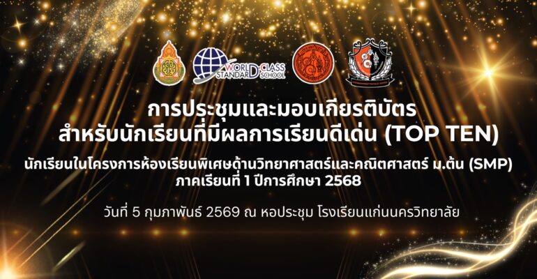 กิจกรรมค่ายภาษาอังกฤษเพื่อการนำเสนอ สำหรับนักเรียนโครงการห้องเรียนพิเศษวิทยาศาสตร์และคณิตศาสตร์ (SMP) ระดับชั้น ม.3 ประจำปีการศึกษา 2568 ในวันที่ 11 มกราคม 2569 ณ วารี วัลเลย์ รีสอร์ท อ.อุบลรัตน์ จ.ขอ […]