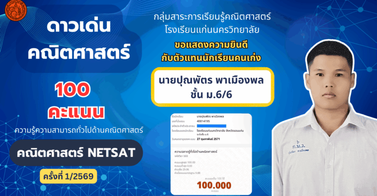 Read Moreดาวเด่นคณิตศาสตร์ 100 คะแนนเต็ม การสอบวิชาคณิตศาสตร์ NETSAT ครั้งที่ 1/2569